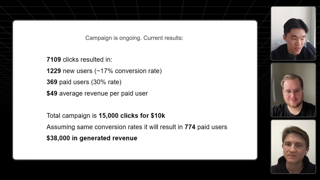 そして発見したのが、「創業者アングル」と「友達が推薦してくれた」アングルが驚くほど効果的だということです。そして今も継続的にテストと反復を行っています。同じアングル内でも異なるプロンプト、異なる例、異なる文脈を継続的に試しています。