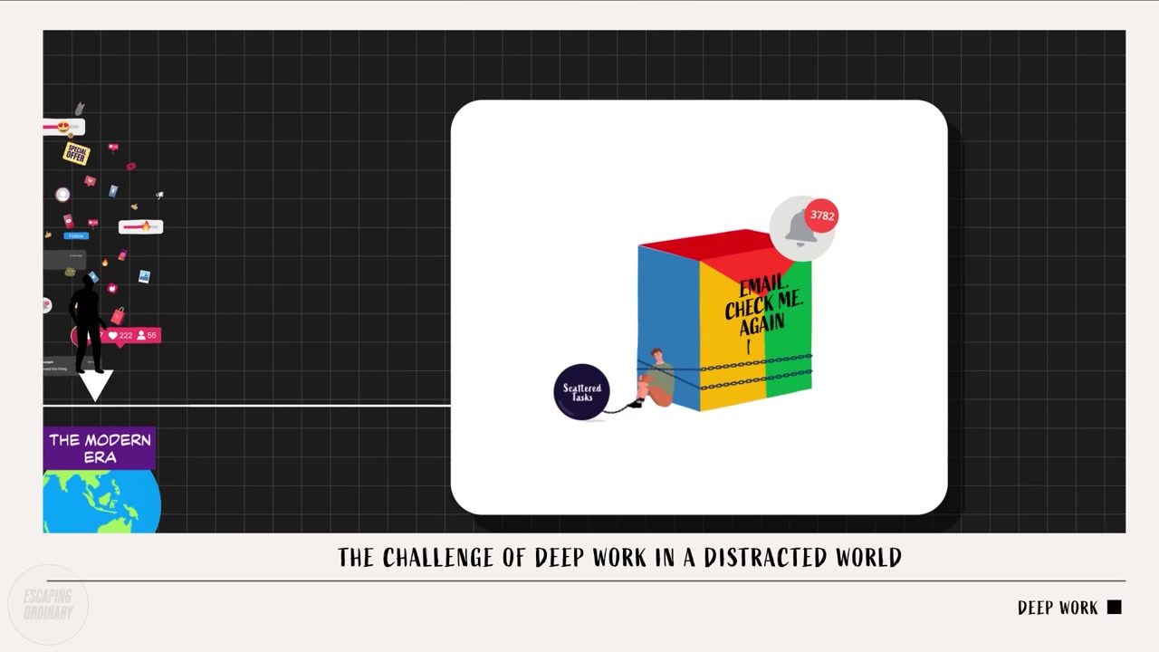 끊임없는 디지털 방해의 시대에, 딥 워크는 과거의 것처럼 보여요. 지식 노동자들은 이메일 받은편지함과 산발적인 업무에 묶여 있어요. 대부분의 사람들 삶에서 깊은 집중의 희소성은 심각한 수준이 되었어요.