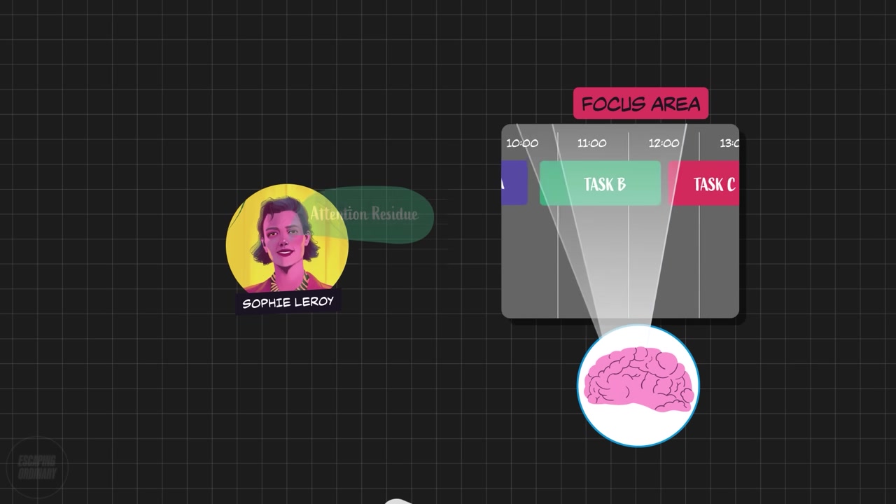 "When we switch from task A to task B, our attention doesn't immediately follow. Our minds are still stuck on task A. She calls this attention residue."
