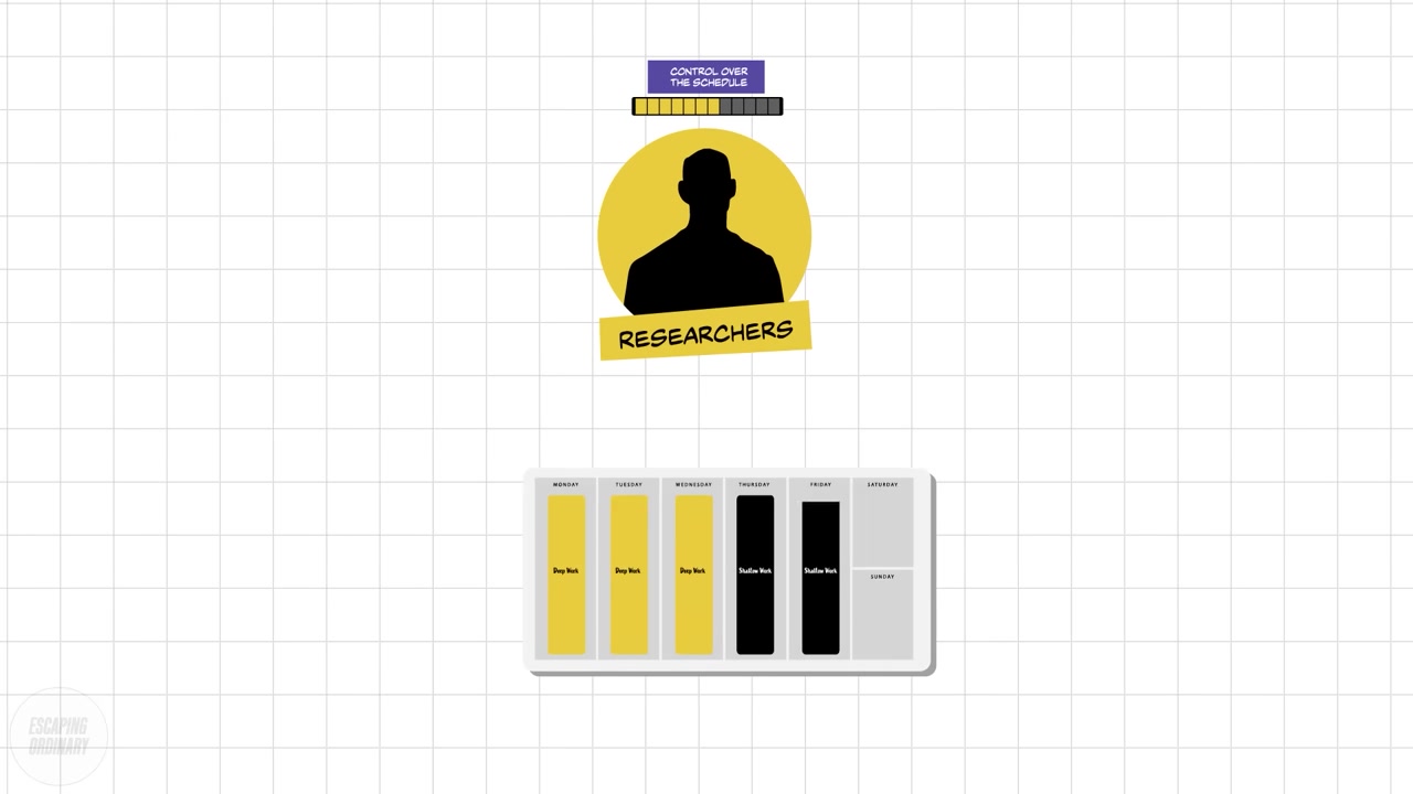 많은 얕은 업무가 있어도 딥 워크를 스케줄할 시간을 찾을 수 있어요. 어떤 사람들은 깊은 업무와 얕은 업무를 번갈아 하는 것을 좋아하고, 다른 사람들은 방해 없는 긴 집중 시간을 선호해요.